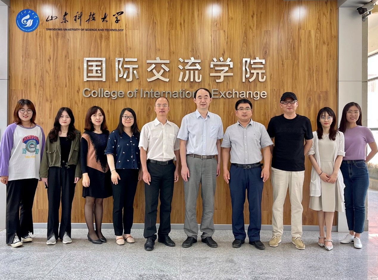 随后,我院教师来到山东科技大学国际交流学院,看望参与线上教学的两名实习学生。山东科技大学国际交流学院院长范志坚、副院长张亚伟、实习工作负责人何玉老师、丁丽老师和实习学生参加了此次座谈会。