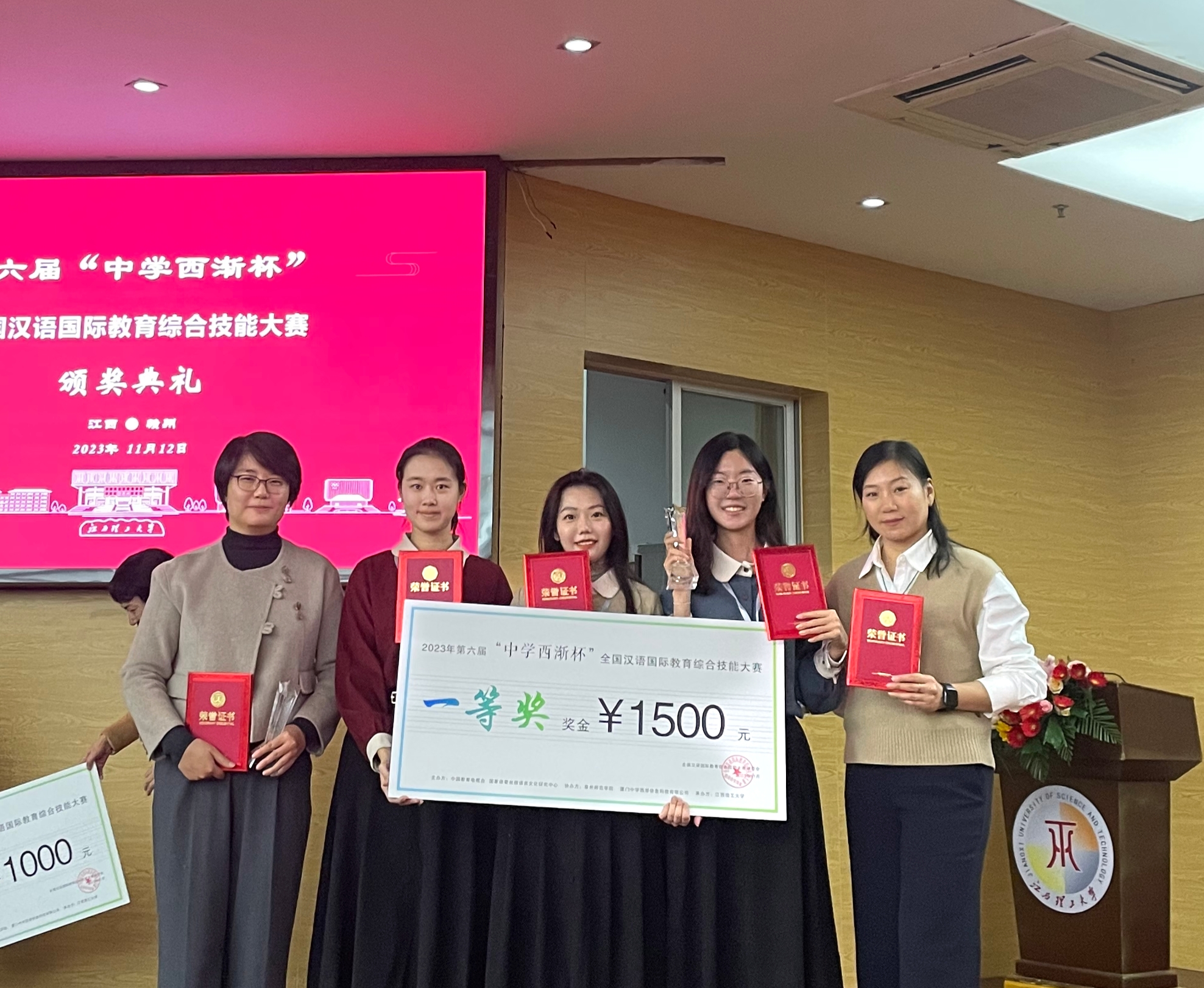 11月12日,第六届“中学西渐杯”全国汉语国际教育综合技能大赛总决赛在江西理工大学落下帷幕。ug环球会员登录代表队在本次大赛中喜获佳绩,本科生组获得全国一等奖和研究生组获得全国二等奖,王爽和李群两位老师荣获“优秀指导教师”称号。