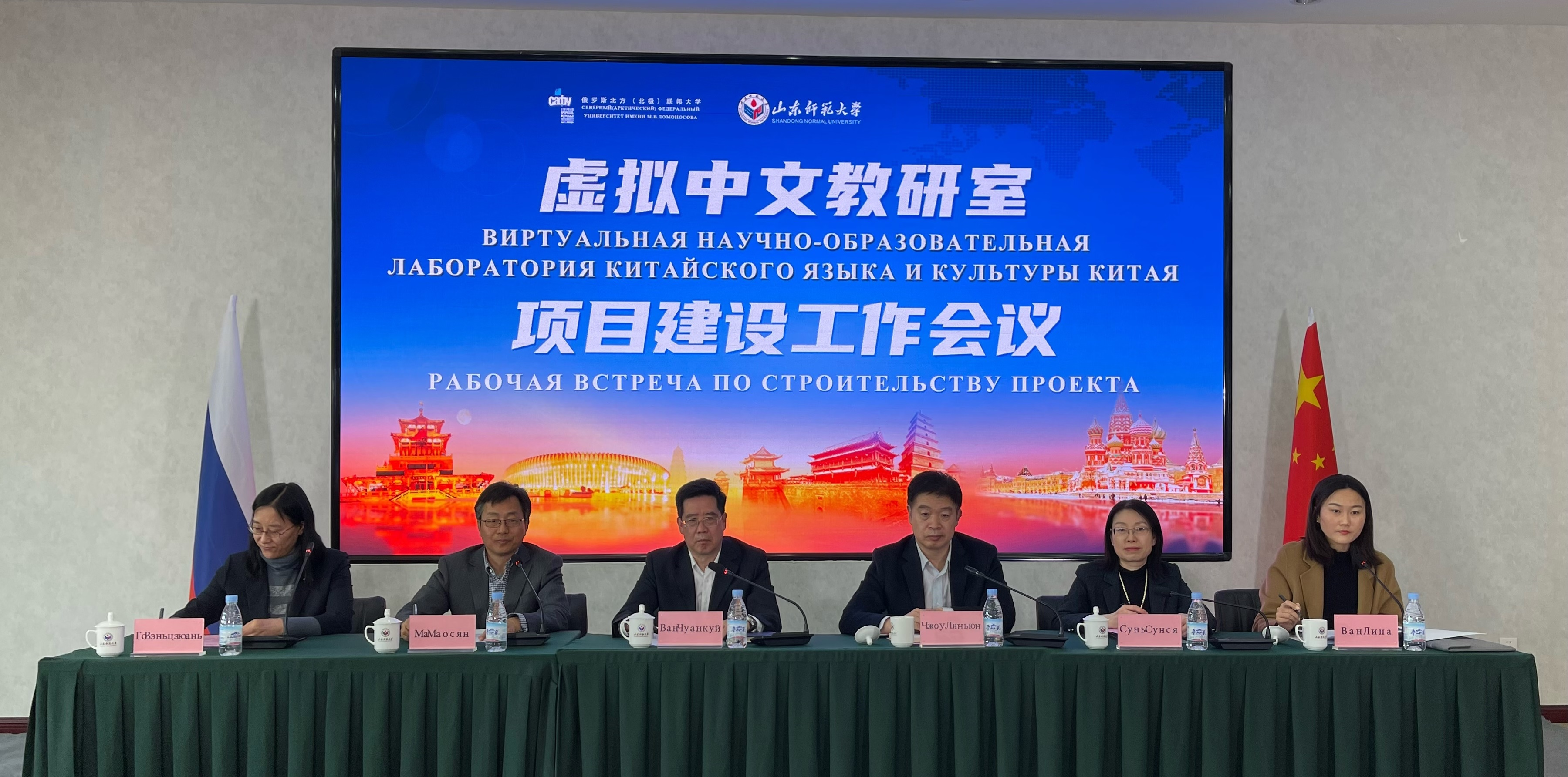 3月27日,由山东师范大学与俄罗斯北方(北极)联邦大学合作建设的“虚拟中文教研室”项目建设工作会议召开。山东师范大学副校长王传奎、俄罗斯北方(北极)联邦大学副校长扎伊科夫、副校长扎鲁比娜出席会议并讲话。山东师范大学国际交流与合作处负责同志,俄罗斯北方(北极 )联邦大学国际学术交流中心、人文社科与国际交流学院负责人,双方项目负责人及项目组成员参加会议。会议由ug环球会员登录院长马茂祥主持。