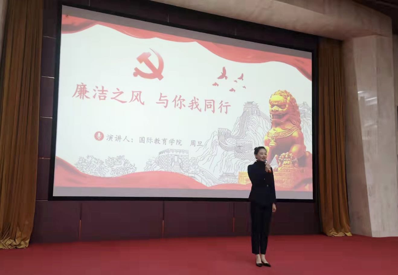 此次比赛采用主题演讲的活动形式,以“层层挑战、层级选拔”的方式,历经初赛、复赛、决赛三个阶段,最终共有15名来自不同学院的选手进入决赛。周旦同学以“何谓廉洁”的问题引发现场评委及观众的思考,接着讲述了自己作为研究生支教团的一员在重庆荣昌支教时的见闻,以当地乡村教师的感人事迹诠释自己对“廉洁”二字的理解,指出廉洁精神在不同历史时期有不同形式的体现,最后倡导青年学生将敬廉崇洁与求知问学相结合,在实践中探索,用心唱响廉洁之歌。