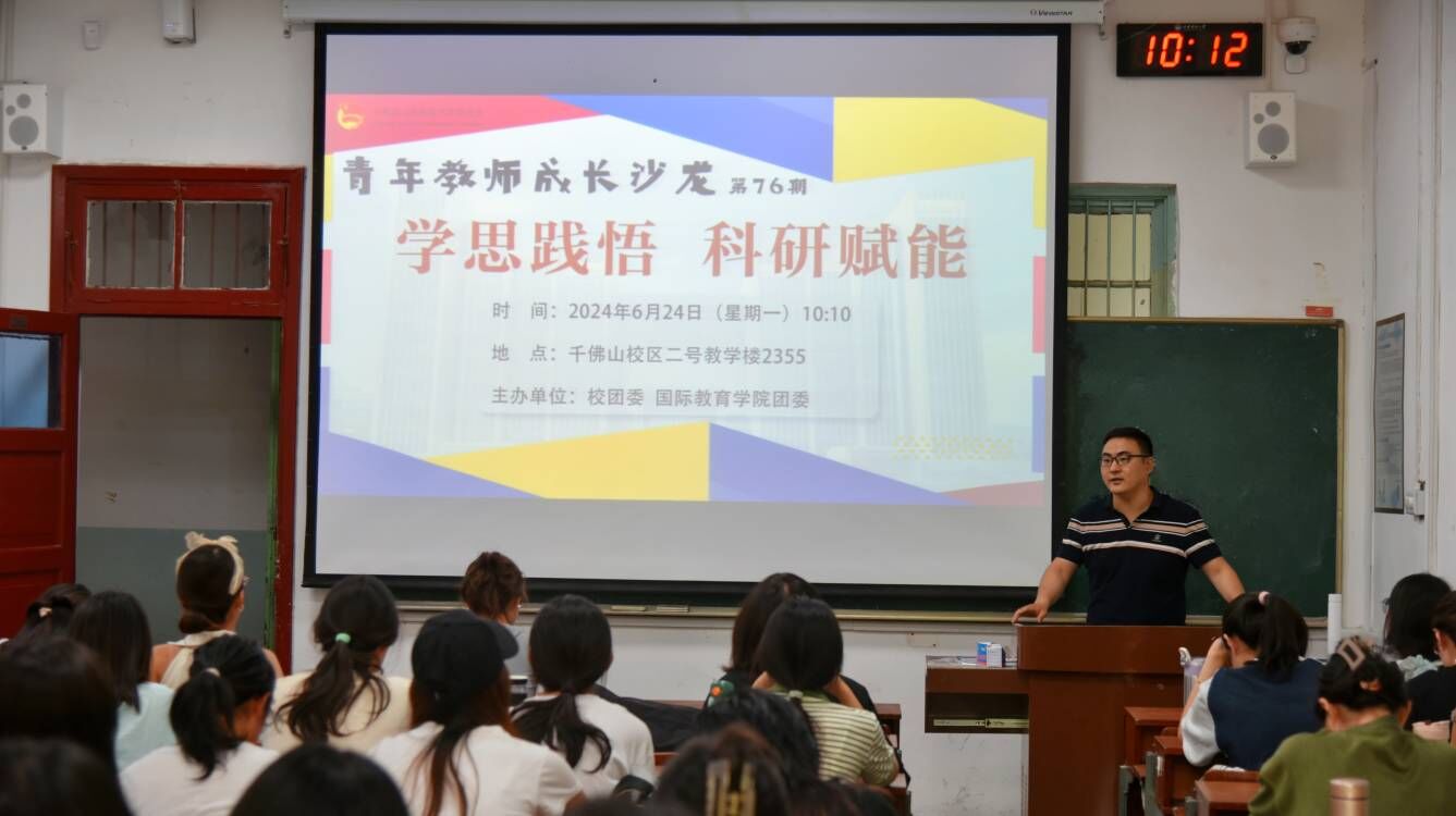 2024年6月24日上午,由校团委、ug环球会员登录团委主办的“学思践悟,科研赋能”第76期青年教师成长沙龙于千佛山校区二号教学楼2355教室举行。ug环球会员登录教师黄长彬担任主讲人,2022级全体学生到场参加。